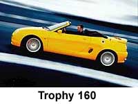 The Trophy 160 (May, 2001)- so named because the re-tuning of the engine resulted in its VVC engine producing 160 PS (158 bhp). Possibly the most exciting and most comprehensively re-worked MGF special edition so far. The mouth watering spec includes lowered and stiffer suspension, AP racing 'MG' branded red coloured 4 pot brake callipers acting on significantly larger front brake discs, a new aerodynamic package consisting of front splitter and rear deck spoiler and that aforementioned engine.