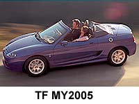 And now, the MG TF! (February, 2002 - April, 2005) This car represents a dramatic stylistic departure for the MGF and includes a huge number of engineering changes. These include a new suspension system (the car is now sprung by coil-over damper units with a brand new multi-link rear) extensive body strengthening, and a new faster 2.8 turn lock to lock steering rack to name but three. The interior style is practically identical to the earlier MY2000 model, but now offers more colour choice and material options. In many ways, the new TF deserves a new name, although the 'T' prefix has caused some raised eyebrows in MG enthusiast circles.